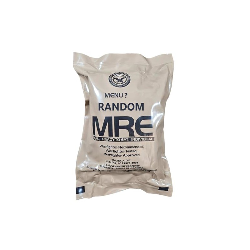 Authentic USGI Meal, Ready to Eat (MRE) - Random Menu Selection(s) - Complete US Military Ration with Entree, Side, Dessert, Drink Mix, Utensils and Heater! (1)