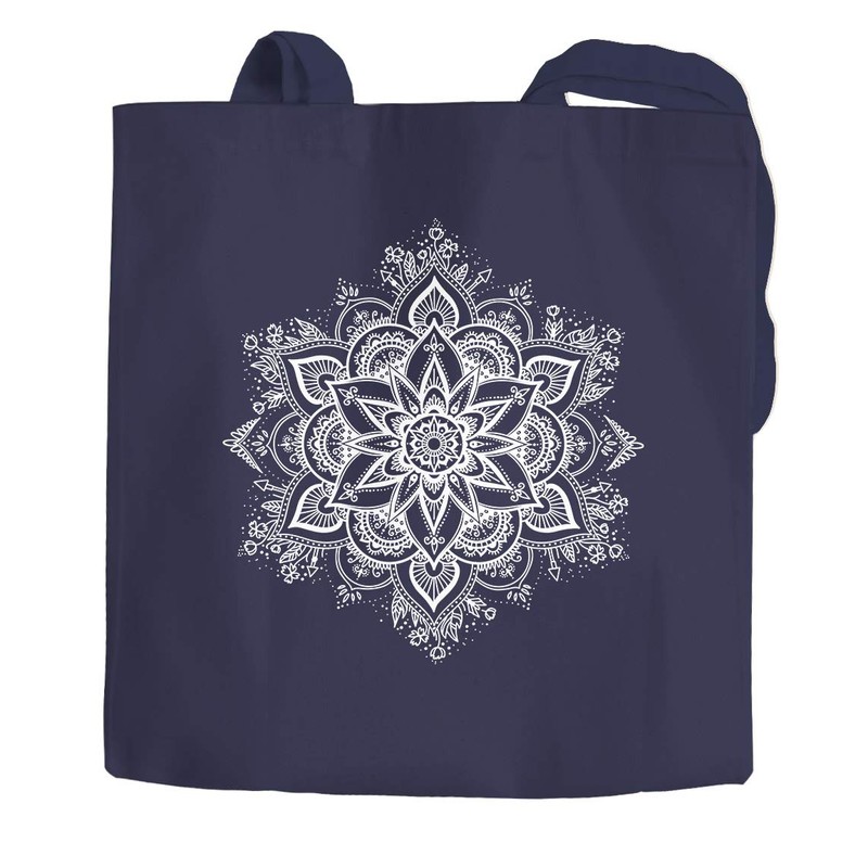Autiga® Jute Bag Mandala Ornament Bohemian Boho Ethnic Cotton Bag Tote Bag Navy 2 Long Handles