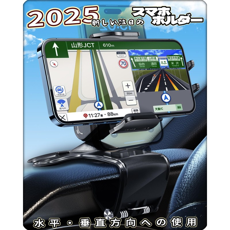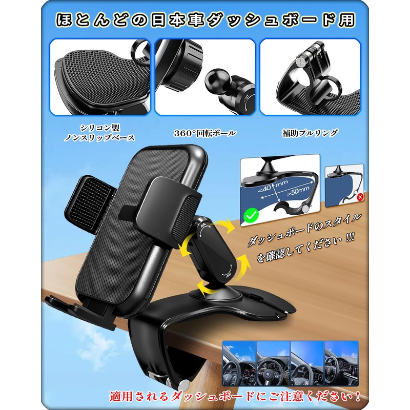 AUTIMHOO Clip-on Smartphone Holder, Car (All Directions Freely Adjustable) In-Car Holder, Mobile Holder for Cars, Dashboard Smartphone Stand, Sumahoruda, Stability, Fall Prevention, 720° Rotation,