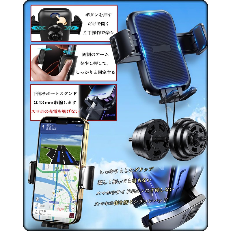 - (Easy one-handed operation / 0.1 second instant installation / Wide compatibility) By pressing the button on the back of the holder, you can open the side arm in 0.1 seconds and remove your phone. To attach your smartphone, simply press the arms on both sides, and the smartphone will not pop out even if dropped from a height of 328.4 ft (100 m). Very convenient. Unlike conventional car smartphone stands, it can be quickly installed and removed with one hand, making it extremely simple to operate. Can be mounted on dashboard, car make-up mirror, etc. It can be used not only in the car, but also at home or We promise that our car smartphone holder can be attached to any smartphone case that is compatible with all smartphone models on the market. Compatible with iPhone Samsung Google and other full series ➤➤ Except folding cell phone