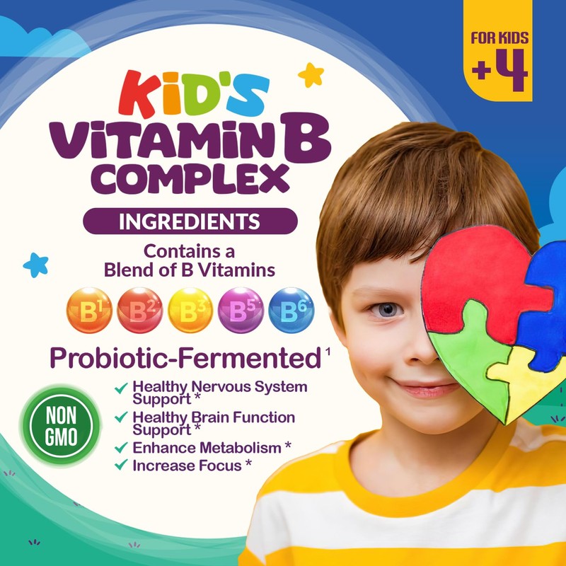 - PROBIOTIC-FERMENTED: Our Kid's Vitamin B Complex features a probiotic-fermented formula, promoting a balanced gut microbiota and encouraging digestive health. This unique fermentation process enhances the absorption of essential nutrients, ensuring optimal benefits for your child's well-being.