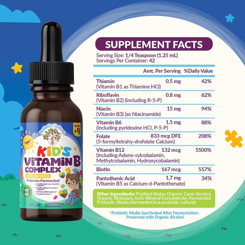 Unleash the Potential:This exceptional supplement combines the benefits of probiotic fermentation and a comprehensive B vitamin blend to unlock your child's potential.