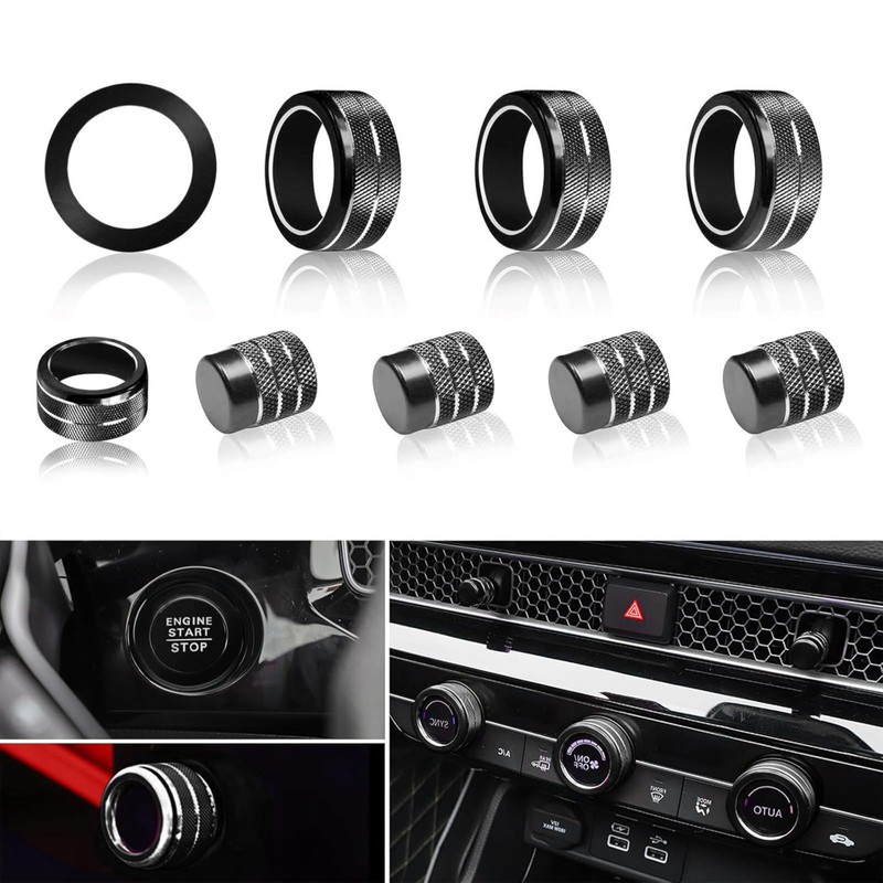 AuTK Air Conditioning, Vent Knob Cover for Honda Civic Accessories 2022 2023 2024 2025 for Honda CRV 2023 2024 2025 for Acura Integra 2023 2024 2025 Start/Stop Push Button Ring Trim 10Pcs (Black)