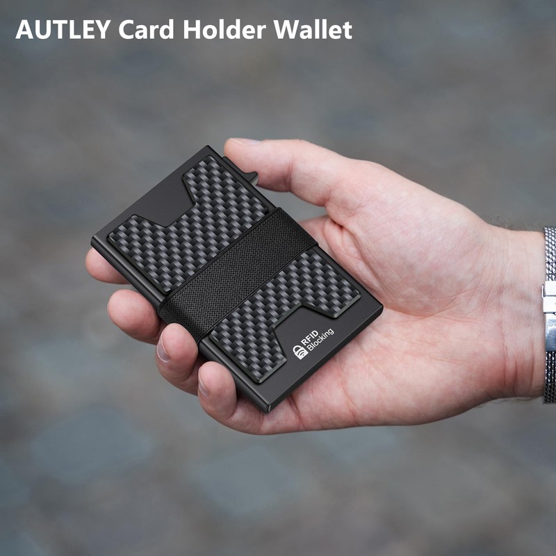 - 【Slim Card Holder Wallet】With sleek compact design, AUTLEY mens wallet is smaller, not bulky like the traditional wallets. Fits well in your front pockets. Easy to carry. Solid construction, Metal body. Great for people who want a functional, trendy and thin wallet for going out. carbon fiber+black