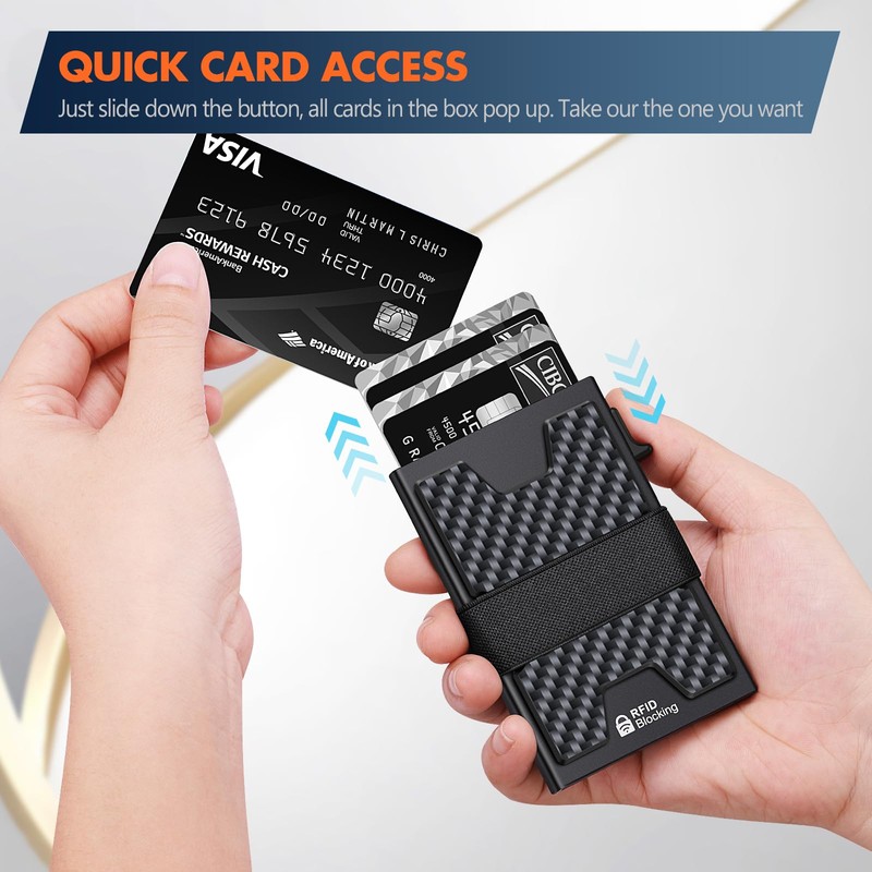 AUTLEY Slim Wallet For Men, Minimalist Mens Wallet, Rfid Blocking Wallet, Pop Up Credit Card Holder with Cash Band (Carbon Fiber+Black)