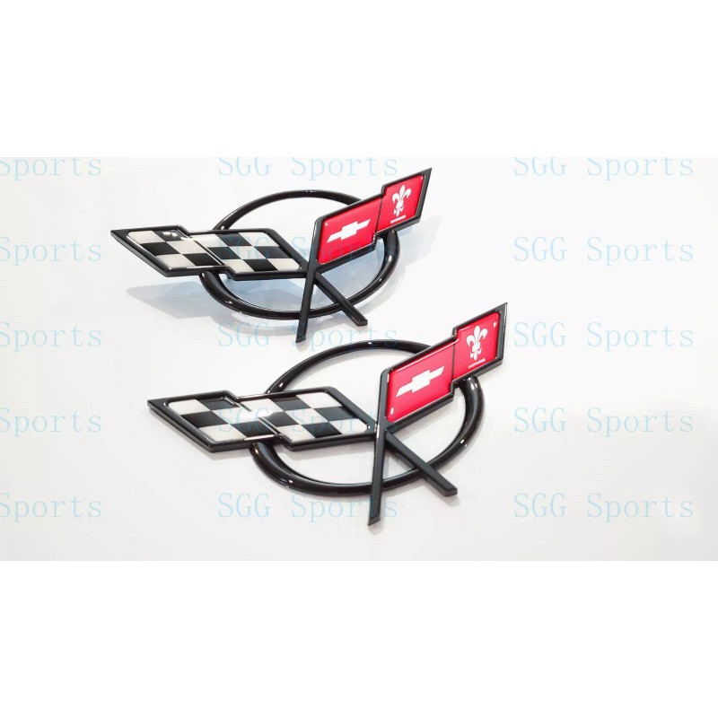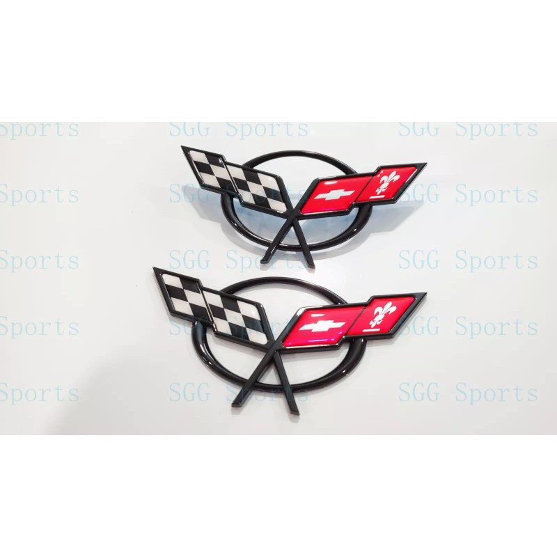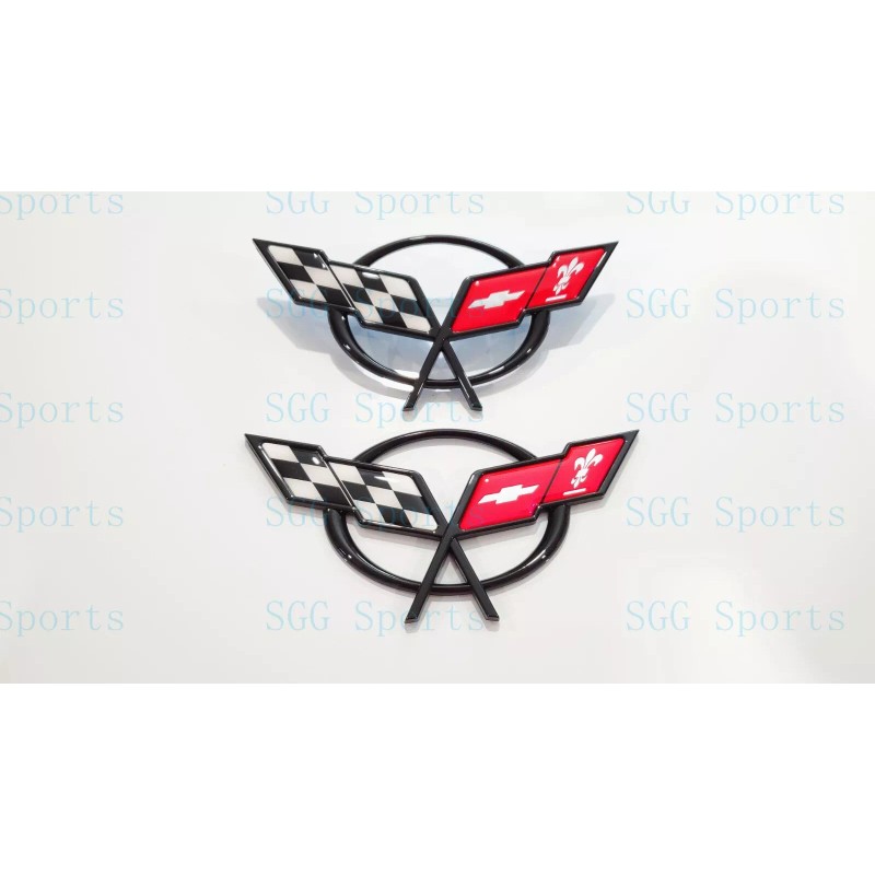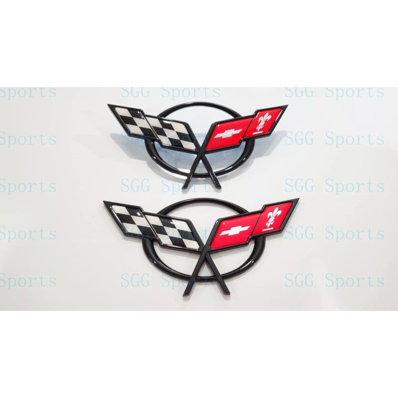 AUTO 2PC 1997-2004 C5 Corvette Black Front Bumper Rear Deck Lid Cross Flags Emblem