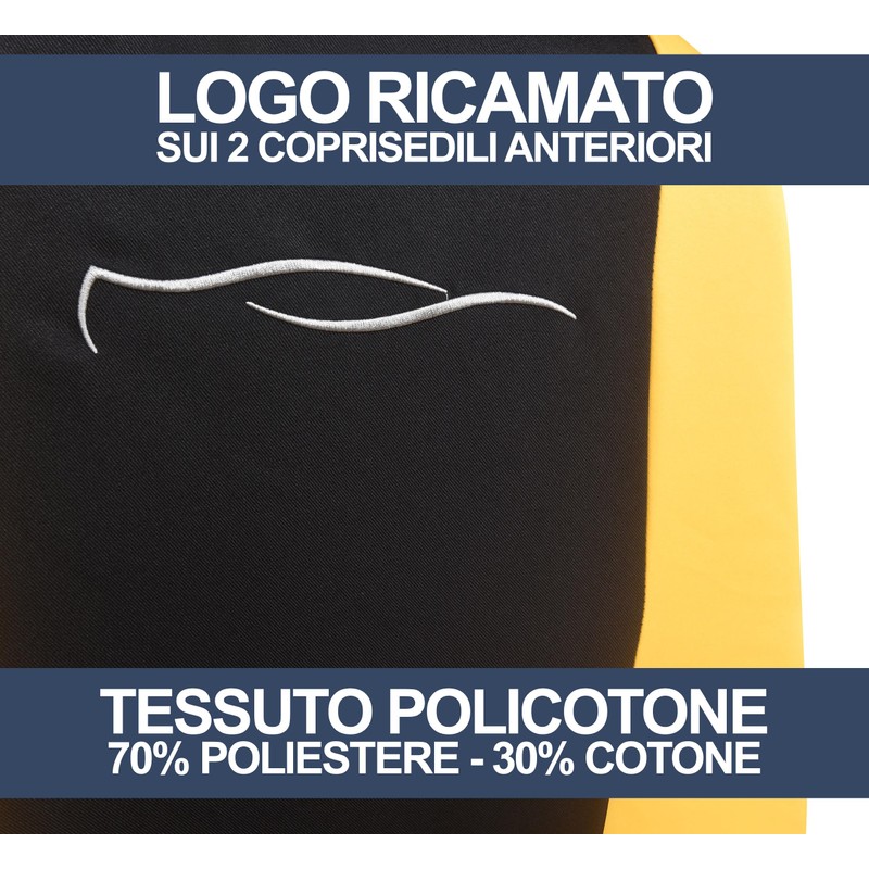 Universal-Sitzbezge aus Polycotton, 70 % Polyester und 30 % Baumwolle und elastisch auf der Rckseite der Bezge, wodurch sie universell einsetzbar sind (das Produkt wurde fr eine gro?e Anzahl von Autos entwickelt, kann keine optimale Passgenauigkeit bei jedem einzelnen Limousinen oder Nutzfahrzeugen garantiert werden). Die Rcksitzbezge bestehen aus 2 Rei?verschlssen an der Rckenlehne, wodurch sie zu fast allen Versionen der Rcksitzbank (40/60 - 60/40 - Vollsitz) montiert werden k?nnen. Kann an Autos mit festen oder abnehmbaren Kopfsttzen vorne montiert werden. Nicht geeignet fr Autos mit Sportsitzen, integrierten Kopfsttzen und Sitzen mit durchgehendem Bezug. Komplettes 9-teiliges Set: 2 x vorne (Fahrer + Beifahrerseite), 2 x hinten (Rckenlehne mit 2 Rei?verschlssen + Sitzbank), 5 x Kopfsttzenbezgen und Montagehaken.
