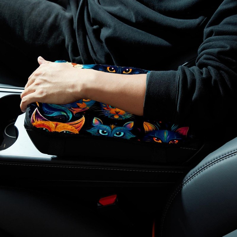 Auto Center Console Mat, Universal Waterproof Armrest Seat Box Cover, Customized Armrest Cover Arm Rest Covering for Car - Cat Heads