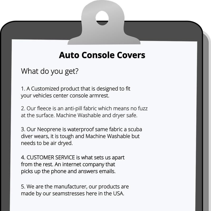 - Custom Fit - Our center console armrest lid covers are custom fitted for the models below