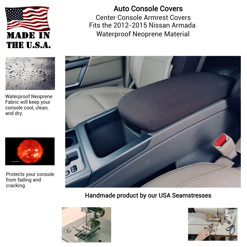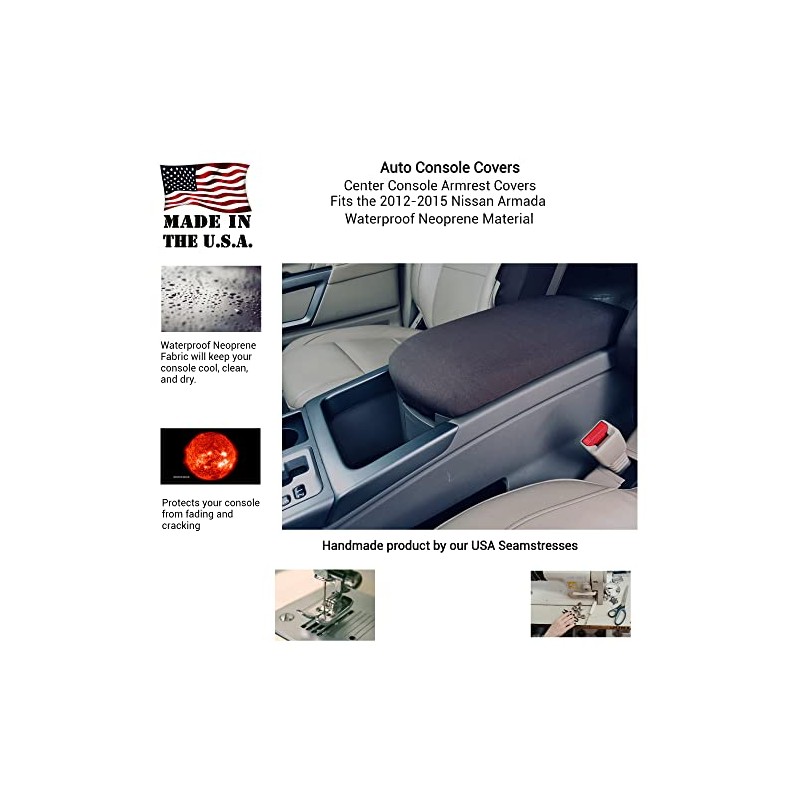Auto Console Covers- Fits The Nissan Armada 2012-2015 Center Console Armrest Cover Waterproof Neoprene Fabric - Black