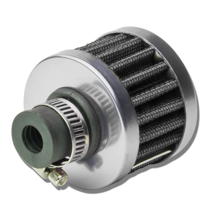 Auto Dynasty 9MM Inlet Universal Chrome Round Straight Aluminum Crankcase Breather Filter (White)