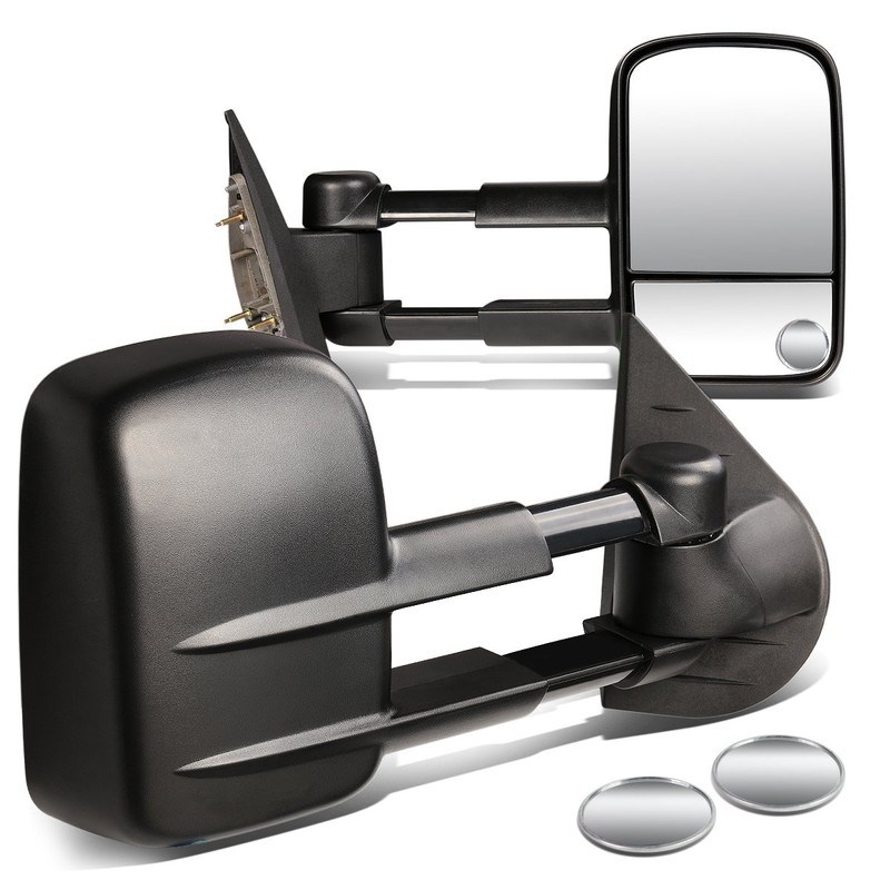 Auto Dynasty Compatible with Silverado/Sierra GMT900 Black Extended Rear View Folding Manual Towing+Round Blind Spot Side Mirror