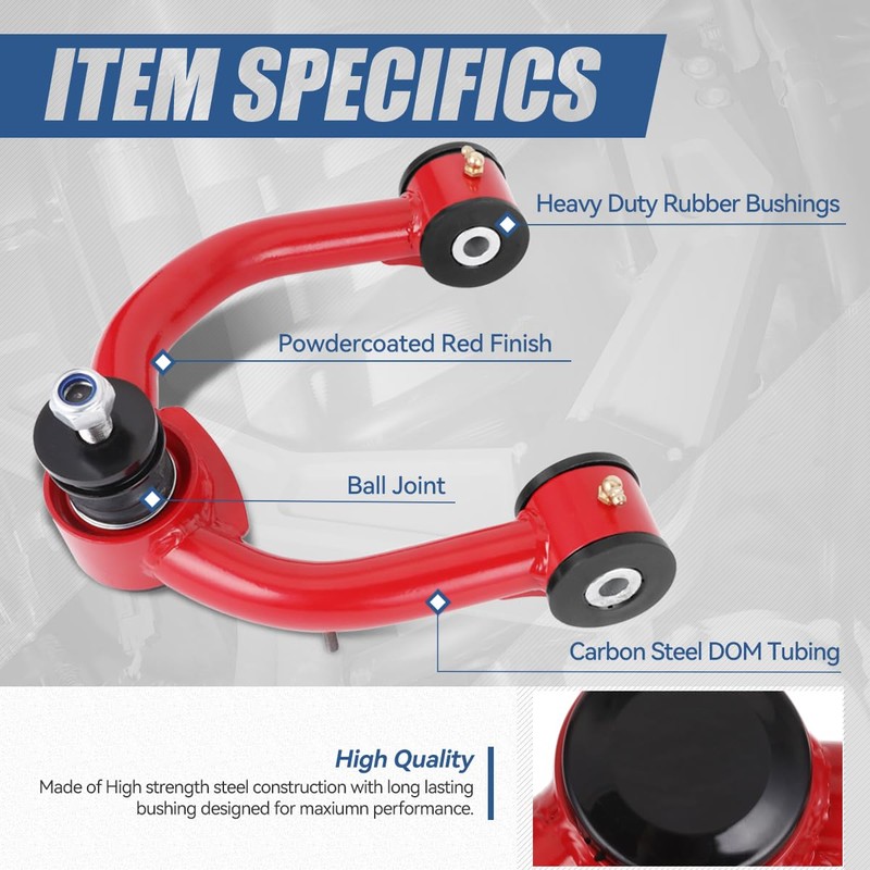 • Best Replacement - Come with 1 x Pair of Front Upper Control Arms (Left & Right) can replace the old or damaged one, TIG-welded and arrive fully assembled, designed with ball joints, bushings, and hardware included