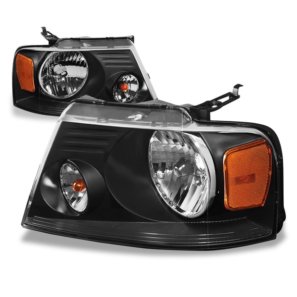 Auto Dynasty Headlights Assembly Compatible with 2004 2005 2006 2007 2008 Ford F150 Lincoln Mark LT 04-08, Left and Right Side Headlamps Car Lights Replacement, Black/Amber