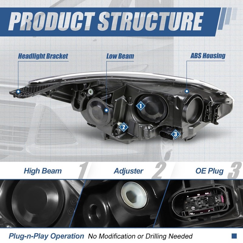 - Vehicle Compatibility: Headlights assembly compatible with Ford Focus 2012-2014. Only Fits Models with Halogen Headlights.