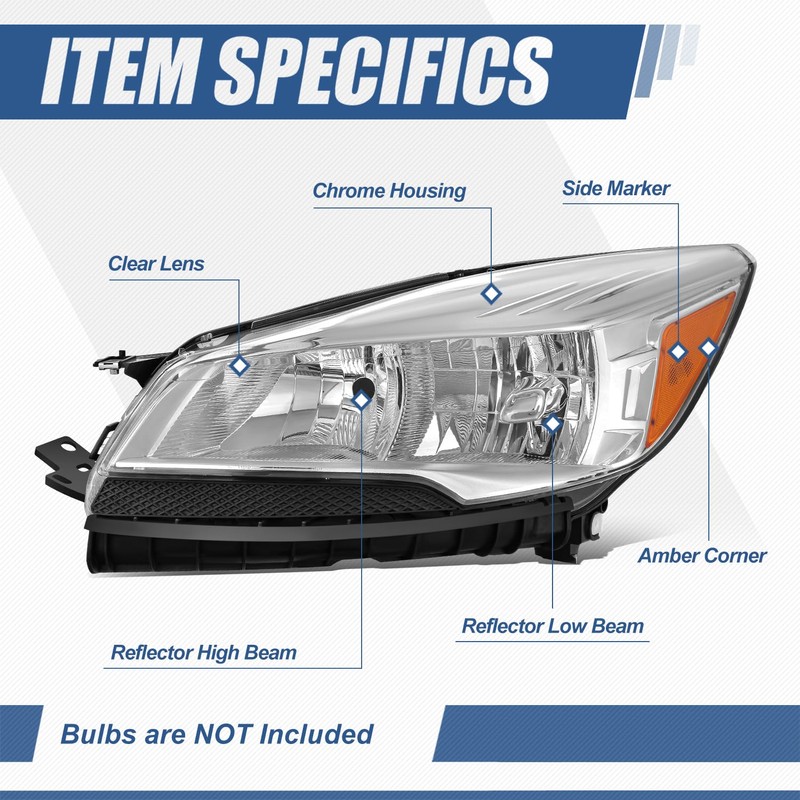 - Vehicle Compatibility - Halogen Headlights Assembly Compatible with Ford Escape 2013-2016, Fits Factory Halogen Headlamps ,S.A.E. (Society of Automotive) and D.O.T, (Department of Transportation) Approved