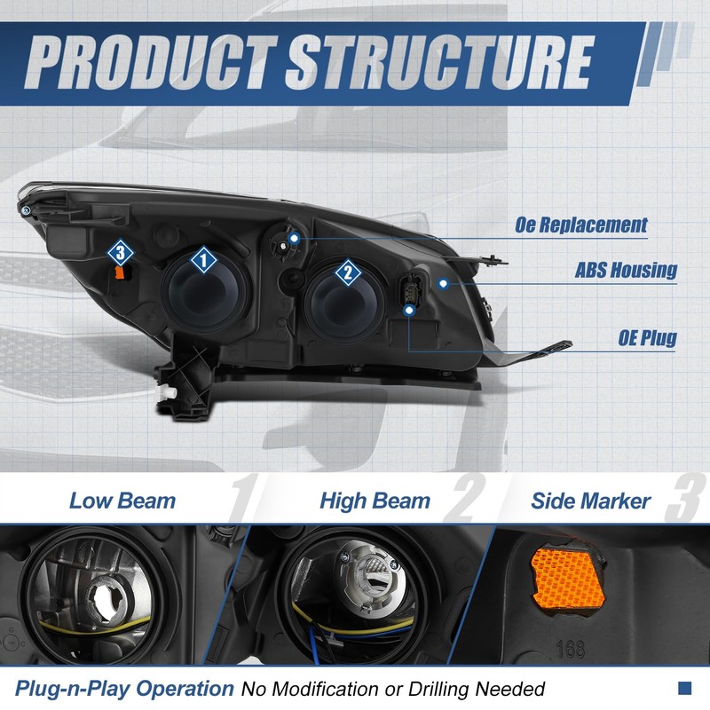 - Improve Visibility and Appearance - Come with 1 x Headlight Assembly can replace the old or damaged headlamp for upgrade appearance of vehicle with a visually striking presence, and help to improve the brightness, allowing you see the road clearly at night or in extreme weather