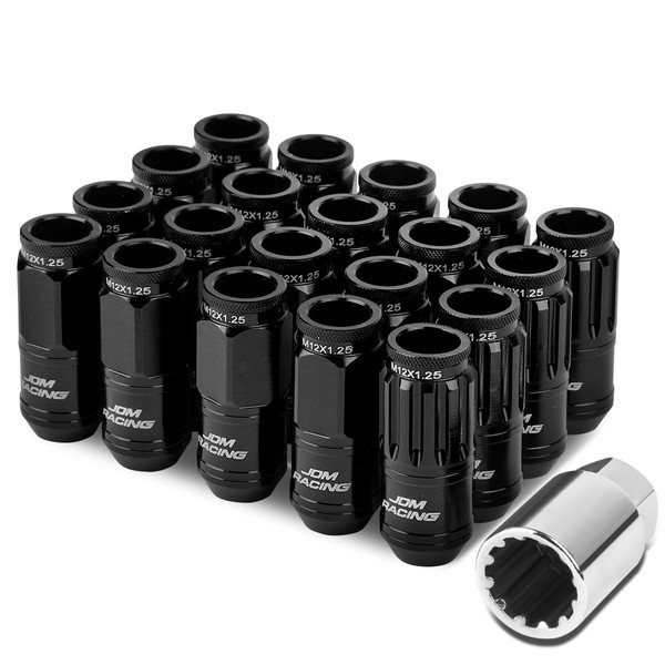 Auto Dynasty (M12 x 1.25) 16-Piece Aluminum Alloy Wheel Lug Nuts + 4 x Lock Nut + 1 x Lock Nut Key (Black)