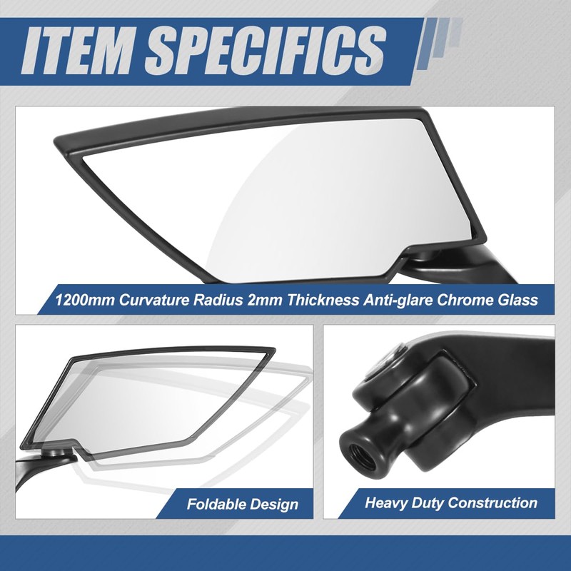- Secure and Stable - Heavy-duty construction ensures minimal vibration during rough rides, keeping your view clear and steady. With 2mm thickness anti-glare white glass and ABS plastic cover, this rearview mirrors can withstand the rigors of off-road adventures, ensuring longevity and clarity for years to come.