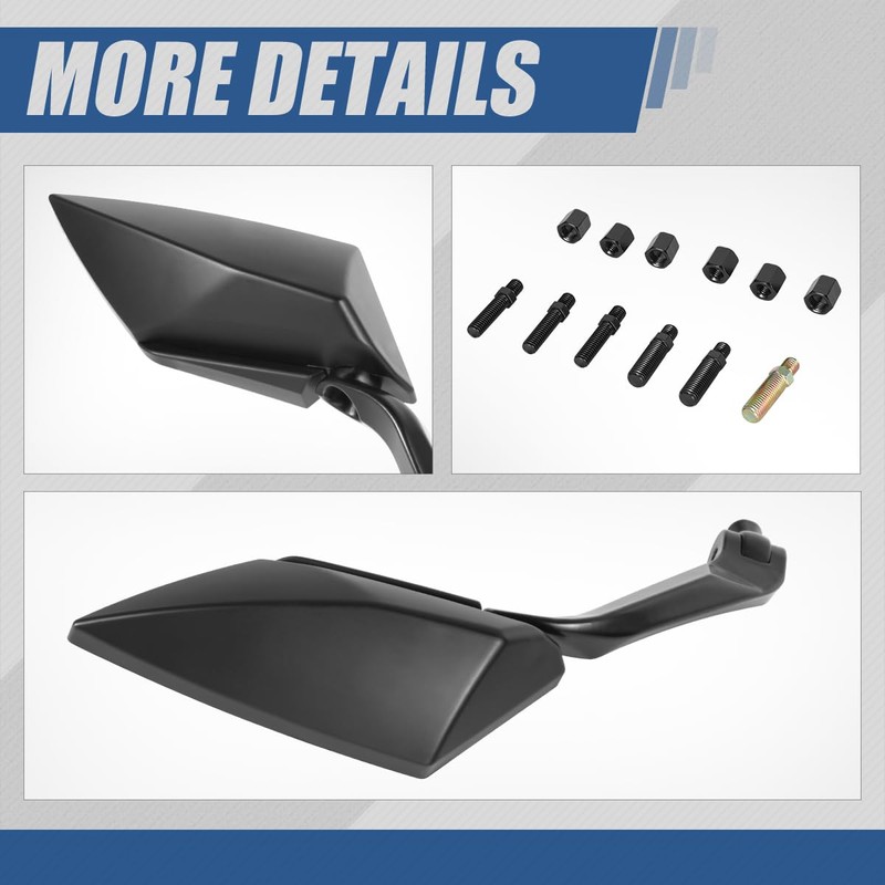 - Easy Installation - This Pair of motocycle Rear View Side Mirror comes with all hardware included for a hassle-free setup, replacing factory mirrors effortlessly without modification.