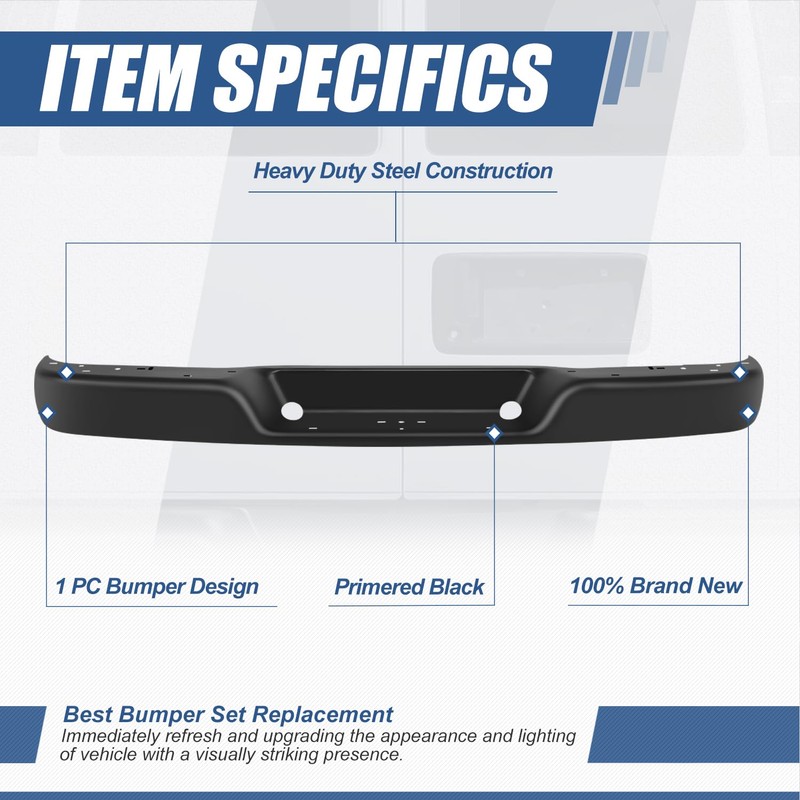 - Improve Appearance - Come with [1] primered black finish rear bumper impact face bar, can replace the broken or missing oem face bar for refresh appearance of vehicle with a visually striking presence.