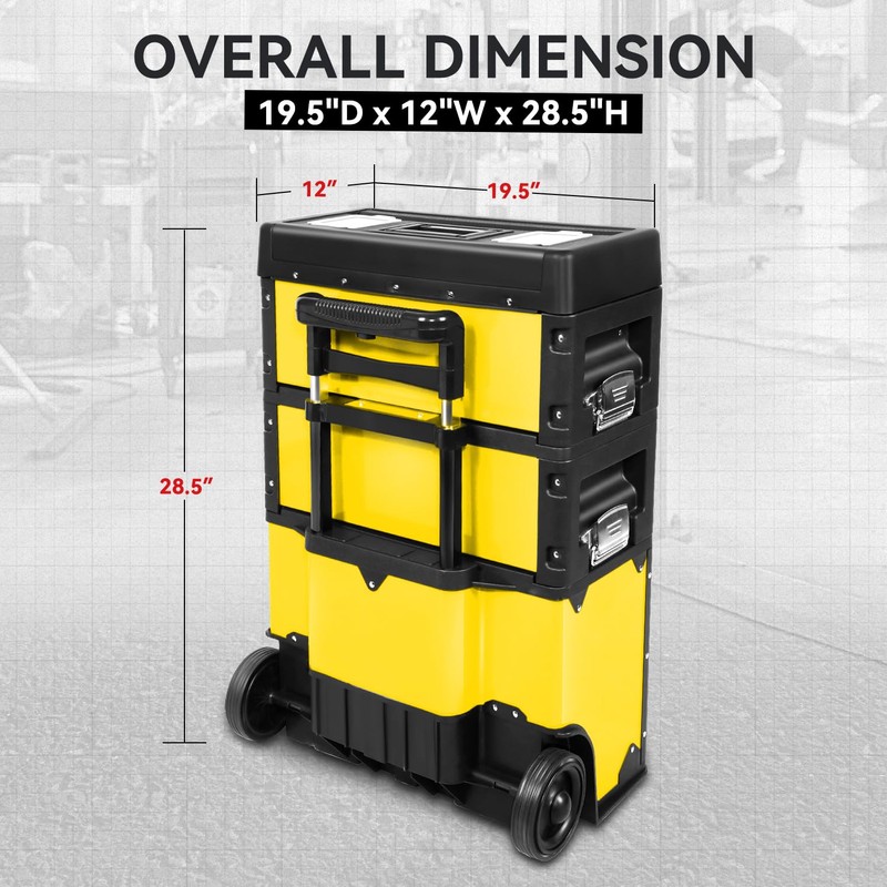 • Advanced Portable Design - This rolling upright toolbox features multiple storage drawers and is composed of 3 stackable parts, complete with an extendable handle and built-in trolley wheels for convenient off-site transport.