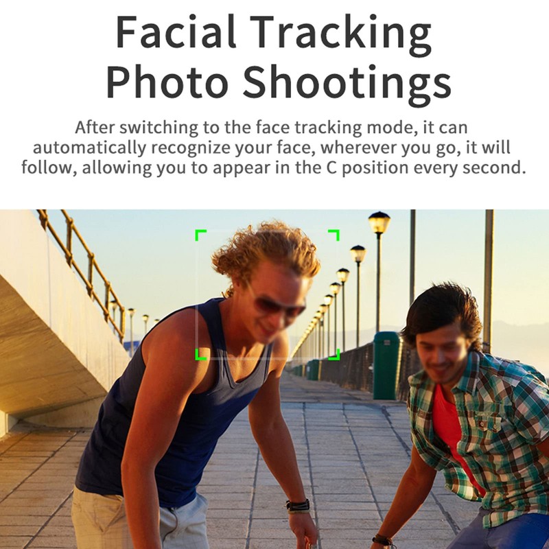 - 【Facial Tracking】After switching to the face tracking mode, the shooting can automatically recognize your face. Wherever you , it will follow, allowing you to appear in the C position every second.
