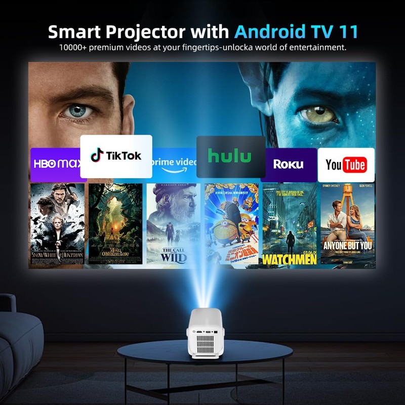 - Smart projector built-in apps with android OS:Take full command of your Salange smart mini projector with revolutionary Mouse Remote precision control—navigate menus like a desktop PC with pinpoint accuracy! Powered by Android 11.0 OS, enjoy instant access to Prime Video, N+ and 6000+ apps on this versatile movie projector. The dedicated streaming hotkeys let you launch favorite platforms in one click, while WiFi 6 ensures buffer-free 4K streaming in your projector for bedroom setup! Your all-in-one entertainment tv projector center, ready in seconds.