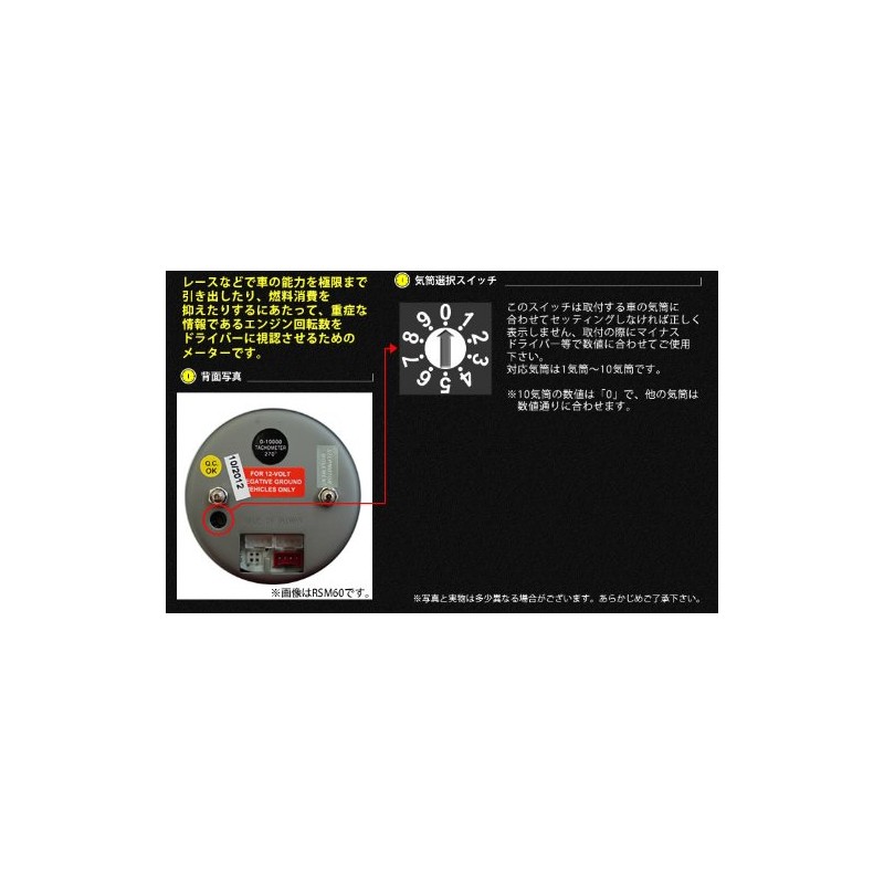 - This meter is designed to allow drivers to see the number of engine rotations that are serious information in order to maximize vehicle capabilities and reduce fuel consumption. White Face Meter with Swiss Step Motor Opening Ceremony, Diameter 2.0 inches (52 mm) Blue LED Warning Function; Accessories: English instruction manual, wiring etc