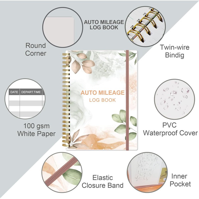 Auto Mileage Log Book – Vehicle Maintenance Log Book, Miles Log Book for Car with Odometer,Expense,Gas Consumption & Lubrication,Repairs and Accessories, 5.8" x 8.5", Rose Leaf