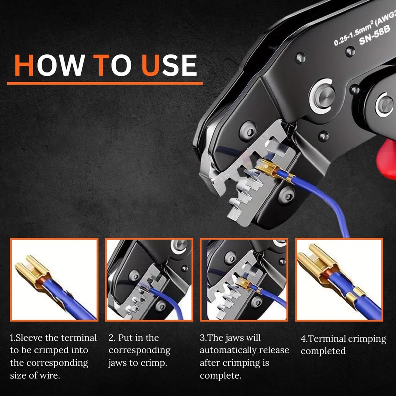 AUTO OCCASION Crimping Tool Plug-in Crimping Pliers with Five Pairs of Replaceable Jaws for Non-insulated 24-16 AWG Open Barrel 0.25-1.5mm² SN-58B