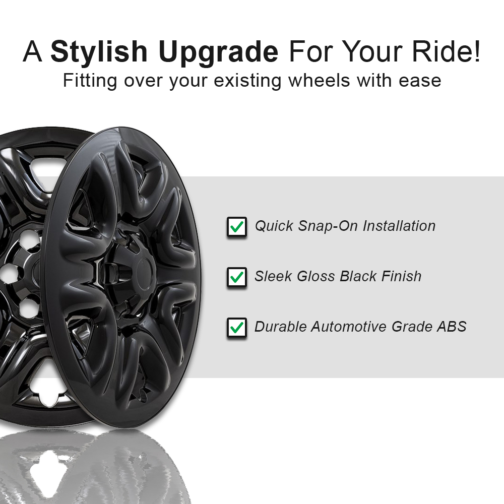This set of four wheel skins are perfectly designed to fit your vehicle's 18-inch factory wheels. These wheel skins feature a 6 Spoke style and is constructed with high-quality, automotive grade ABS and finished with a sleek gloss black finish!