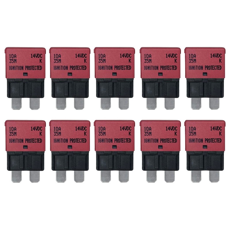 Auto Reset ATC/ATO 10 Amp Circuit Breaker Fuse for Automotive Marine RV Car Truck Audio Battery Protection Automatic Reset | Low Profile (10A, 10 Pack)