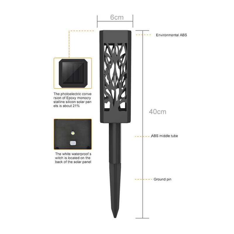 1、1. Made of high-quality materials, waterproof and dustproof grade IP44, to meet the normal use in non-extreme weather. 2、2. Built-in 1*AAA1.2v/600mah Ni-MH rechargeable battery, no need to purchase additional batteries. 3、3. Use with solar panels, no need to lay out the circuit, easy to install. 4、4. The leaf hollow design is beautiful, simple and generous, and you can see it from a distance when you go home at night. It is an excellent lawn decoration. 5、5. Automatic induction, charging with light, no light, with light sensor, no need to open manually.