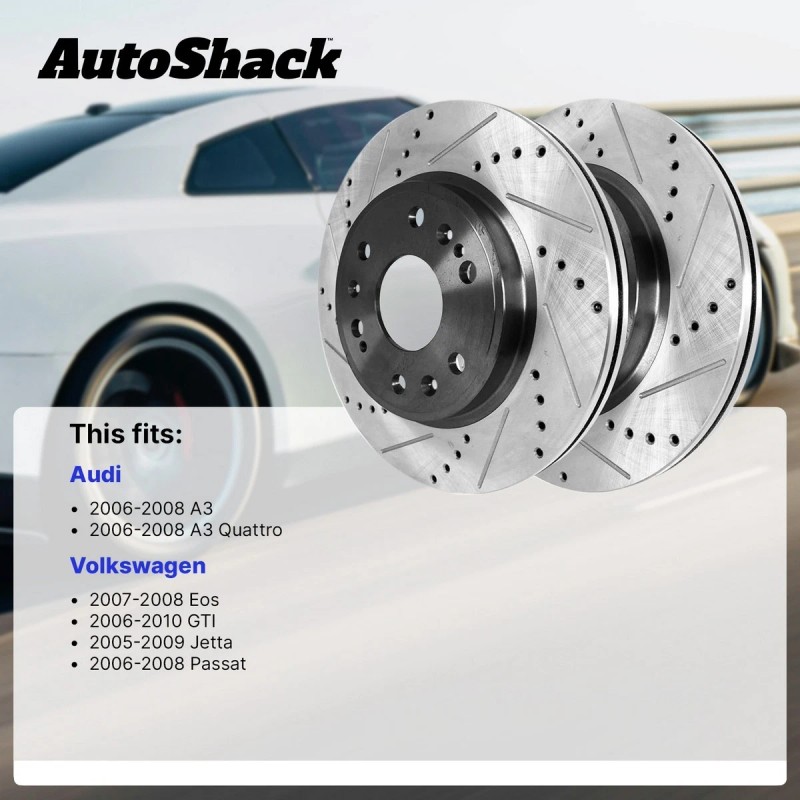 Make Model Year Notes Position Audi A3 2006 - 2009 Front 12.28 Inch Rotor Diameter | Rear 11.26 Inch Rotor Diameter | 5 Stud Front and Rear Audi A3 Quattro 2006 - 2009 Front 12.28 Inch Rotor Diameter | Rear 11.26 Inch Rotor Diameter | 5 Stud Front and Rear Volkswagen Eos 2007 - 2008 Front 12.28 Inch Rotor Diameter | Rear 11.26 Inch Rotor Diameter | 5 Stud Front and Rear Volkswagen GTI 2006 - 2010 Front 12.28 Inch Rotor Diameter | Rear 11.26 Inch Rotor Diameter | 5 Stud Front and Rear Volkswagen Jetta 2005 - 2006 Front 12.28 Inch Rotor Diameter | Rear 11.26 Inch Rotor Diameter | 5 Stud | 7th and 8th digits of VIN are 1K Front and Rear Volkswagen Jetta 2007 Front 12.28 Inch Rotor Diameter | Rear 11.26 Inch Rotor Diameter | 5 Stud Front and Rear Volkswagen Jetta 2008 GLI, Wolfsburg Edition | 2.0L | Turbocharged | Front 12.28 Inch Rotor Diameter | Rear 11.26 Inch Rotor Diameter | 5 Stud Front and Rear Volkswagen Jetta 2009 GLI | 2.0L | Turbocharged | Front 12.28 Inch Rotor Diameter | Rear 11.26 Inch Rotor Diameter | 5 Stud Front and Rear Volkswagen Passat 2006 - 2007 2.0L | Turbocharged | Front Wheel Drive | Front 12.28 Inch Rotor Diameter | Rear 11.26 Inch Rotor Diameter | 5 Stud Front and Rear Volkswagen Passat 2008 2.0L, 3.6L | Front Wheel Drive | Front 12.28 Inch Rotor Diameter | Rear 11.26 Inch Rotor Diameter | 5 Stud Front and Rear -