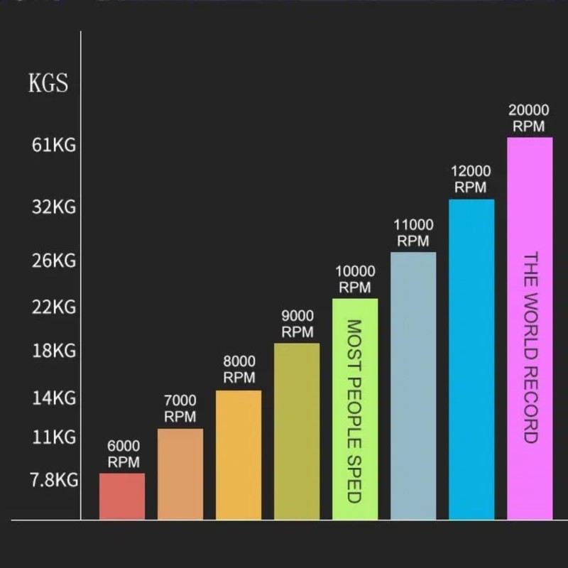 → High RPM (6,000-12,000): LEDs stay intensely lit as speed stabilizes.