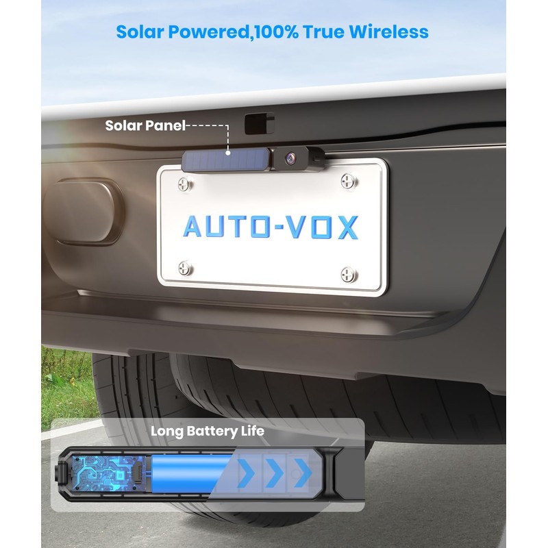 AUTO-VOX AUTO-VOX Solar Wireless Backup Camera with 5" HD Monitor: 3 Mins DIY Installation & Battery Powered Back Up Camera Systems, IP69K Waterproof Reverse Camera for Car, Van, SUV, Truck, Trailer