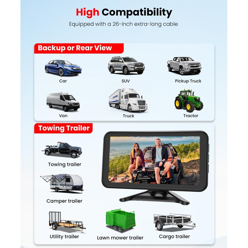 2. High compatibility: Back up camera systems for trucks are ideal for mid-size vehicles such as Vans, SUVs, Trucks, and Trailers