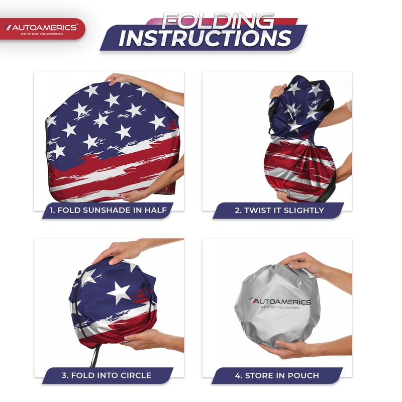 • Market-leading sun protection with an eye-catching American flag design. The new Autoamerics 1 piece USA windshield sunshades combines unbeatable sun reflecting and heat blocking capabilities. We achieve our market-leading protective performance by combining the finest reflective materials and innovative design to reflect the most scorching hot UV rays and heat.