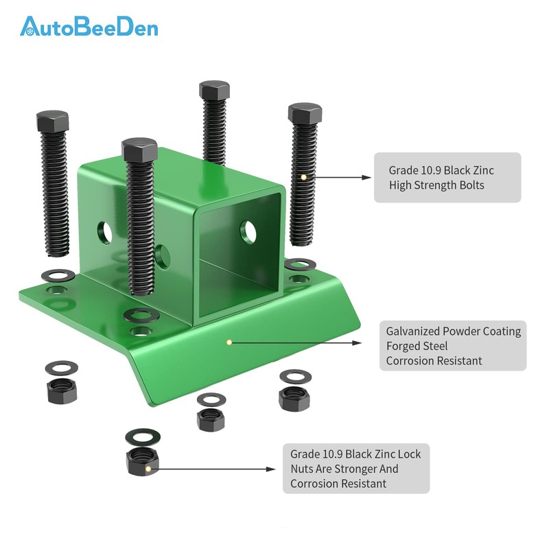 AutoBeeDen Tractor Bucket Hooks 2 inch Receiver, Mount with Backing Plate, Grade 70 Forged Steel Bolts, 2" Receiver Compatible with John Deere sub Compact and Compact Tractor Buckets