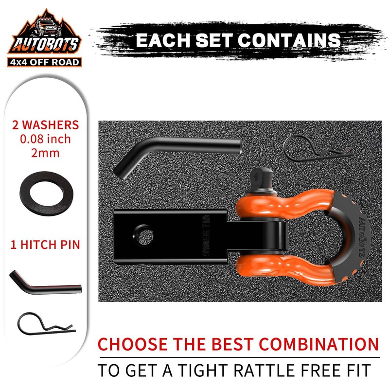 AUTOBOTS AUTOBOTS Tow Hitch Receiver 2", 45,000 Lbs Break Strength Shackle Hitch Receiver with 5/8" Screw Pin, 3/4 Shackle, Towing Accessories for Vehicle Trailer Recovery Off-Road Orange&Black