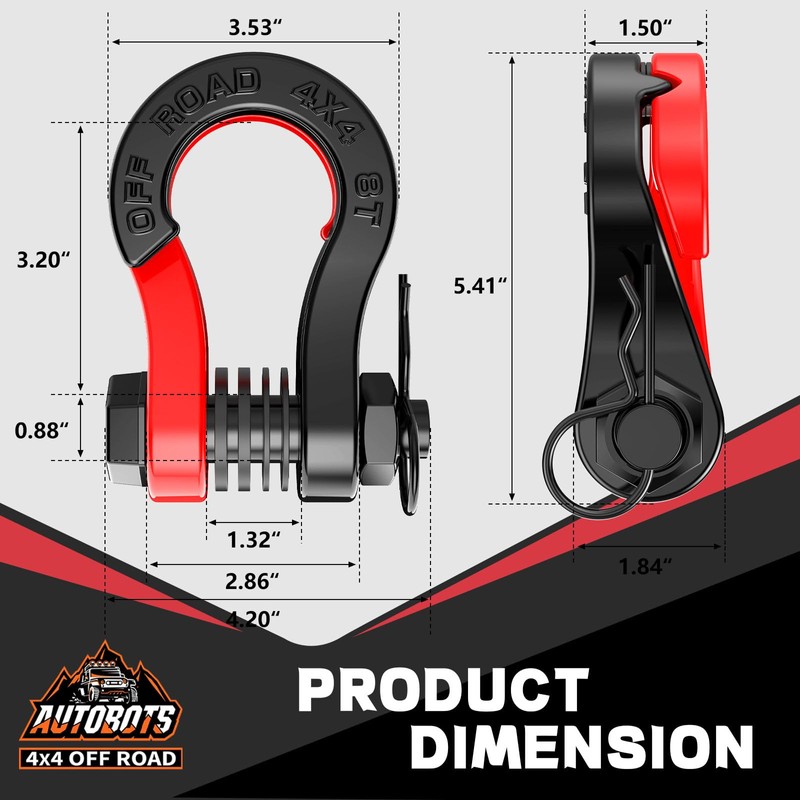AUTOBOTS Tigertooth D Ring Shackles 45,000lb Break Strength, 3/4”Shackle D Rings Heavy Duty with 7/8 Pin for Tow Strap Winch Offroad Vehicle Recovery Accessories Red