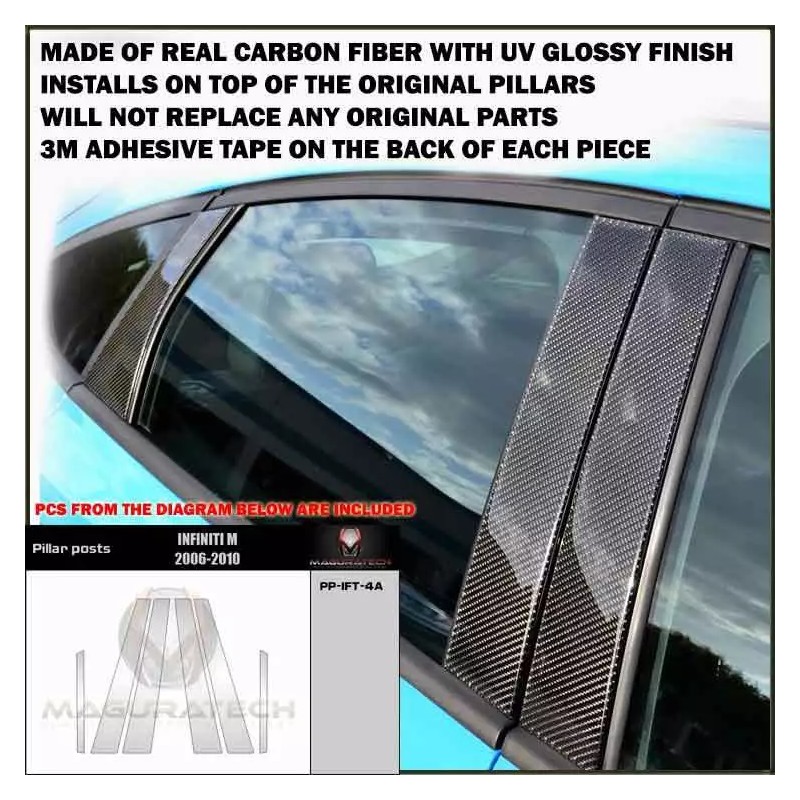 AUTOCARIMAGE FITS INFINITI M 2006-10 REAL BLACK CARBON FIBER WINDOW PILLAR POSTS - 6 PCS
