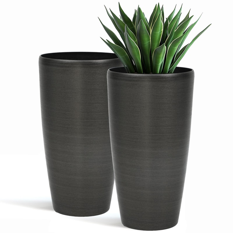 - SLEEK MODERN DESIGN: Elevate your space with this set of 2 tall pot planters, featuring stunning handmade metallic brushed textures that exude modern elegance. Whether framing your front porch, adding a statement to your garden, or bringing a stylish touch indoors, these planters create a striking display for blooming flowers, lush greenery, or aromatic herbs, transforming any setting with sophistication and natural charm.