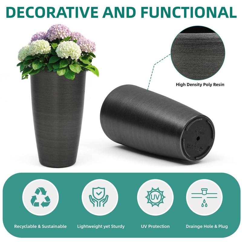 - ALL-WEATHER RESISTANT: Made from high-density resin treated with UV inhibitors, these large flower pots are built to resist fading, impact, cracks, and frost, ensuring reliable performance in all seasons.