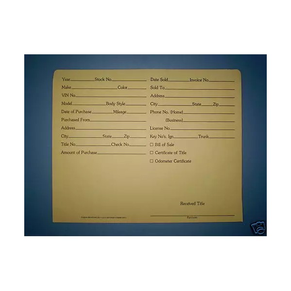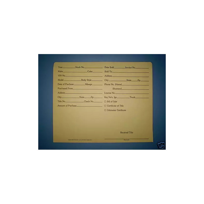 Use these handy 9" x 12" manila envelope Deal Jackets for storing all of your vehicle's important papers.
