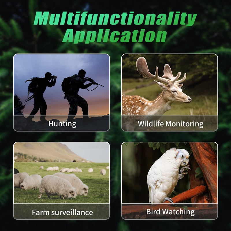- 【Long-Distance Observation】Featuring a 16x automatic zoom and a starlight full-color vision range of approximately 1968 ft/600m, these night vision binoculars allow you to observe animals and other objects up close in the dark. The sturdy and durable rubber shell can withstand harsh outdoor environments, providing reliable assistance for your hunting and other activities.