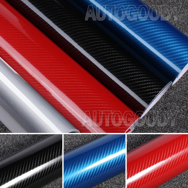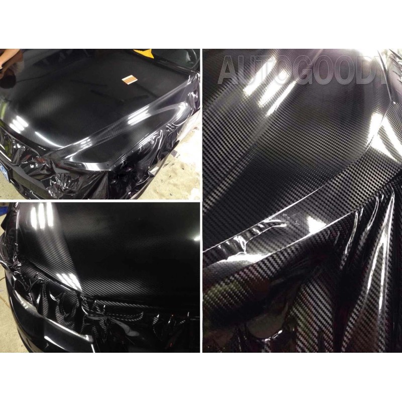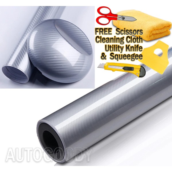 AUTOGOODY 108" x 60" HIGH GLOSS 5D Silver Carbon Fiber Vinyl Wrap Bubble Free 9ft x 5ft 6D