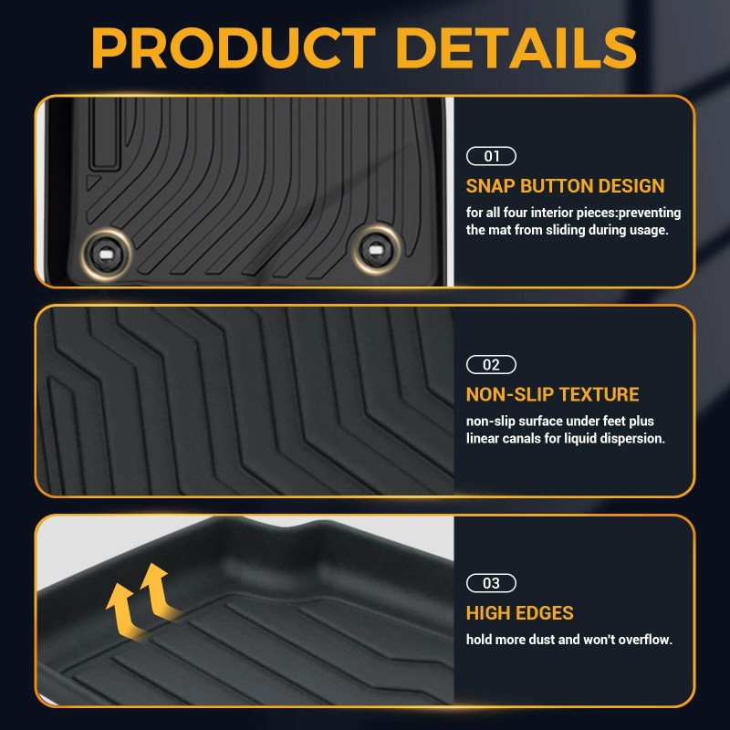 🚗Perfect Fit&No Slipping: The mats are tailored to fit your vehicle's exact dimensions. You can be sure that they will fit like a skin and provide maximum coverage. The 3D extended border makes you feel that the floor mat integrates the car during use.