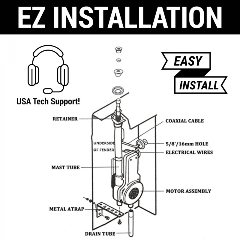 Designed by installers for installers, our power antenna includes a compact and durable reinforced resin case, heavy-duty sealed motor, and a fully automatic stainless steel aerial with chrome mast. Simple installation, premium grade material, and show quality looks make this Power Antenna Kit the ideal choice when replacing or upgrading your existing antenna.